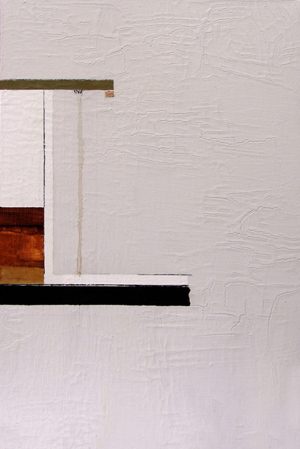 The narrative is told through artifacts rather than snapshots, each painting highlighting a specific object or area of the room. Stark, empty compositions emphasize the walls, with their flaking pastel paint.